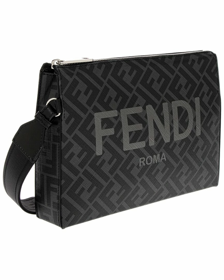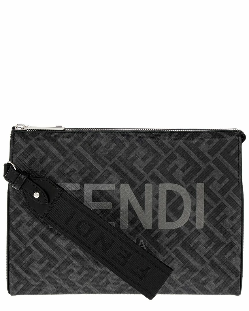 - All Over FF Logo Pouch in black and grey polyurethane/cotton/polyester with calfskin details