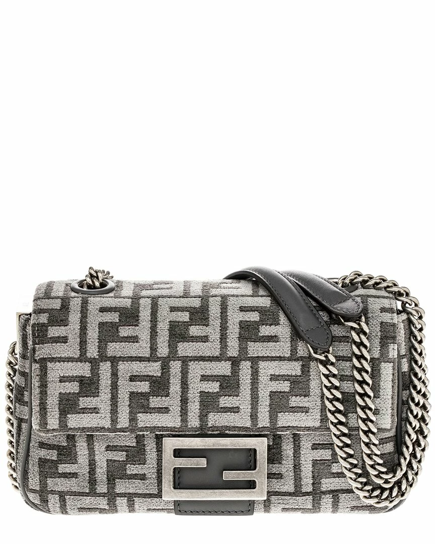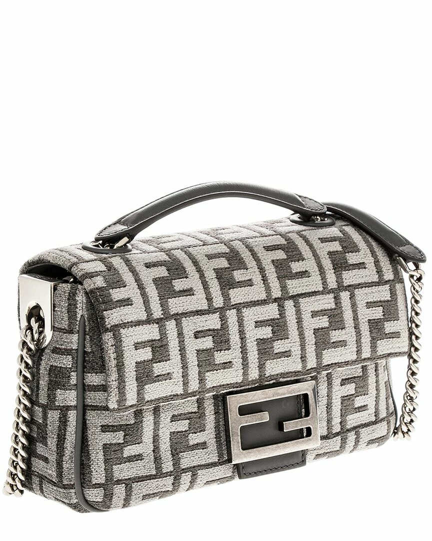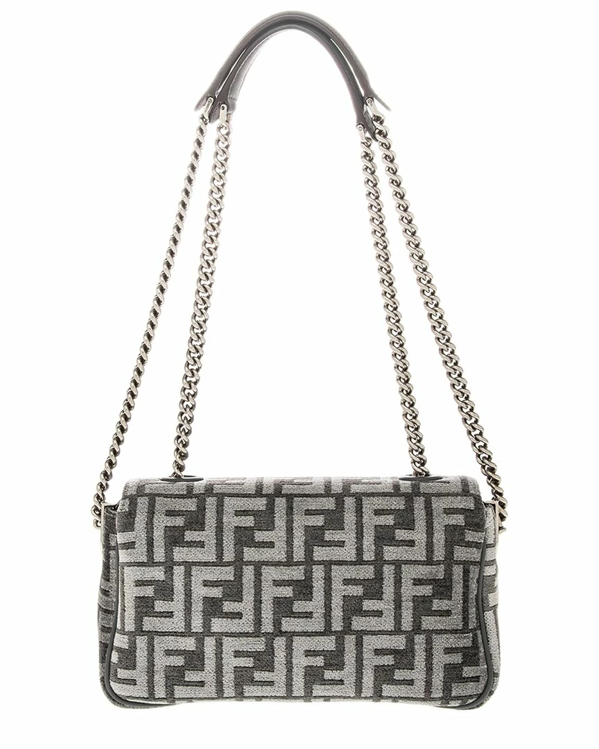- Baguette Chain Medium Shoulder Bag in grey viscose/polyester and palladium-finish hardware with FF tapestry motif and with an FF clasp