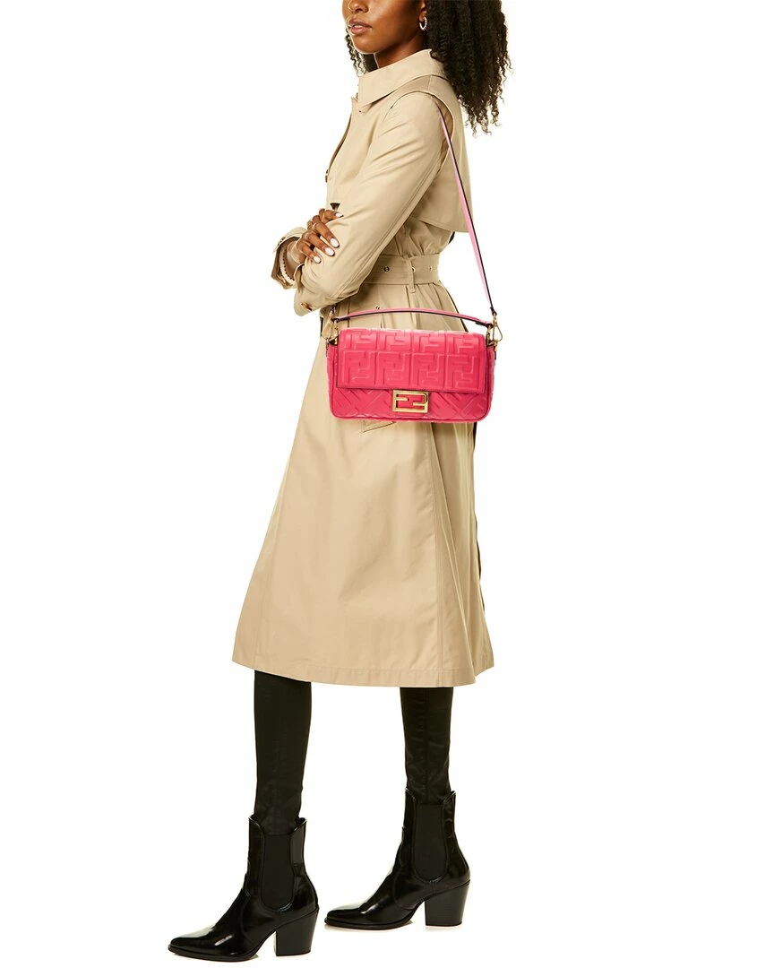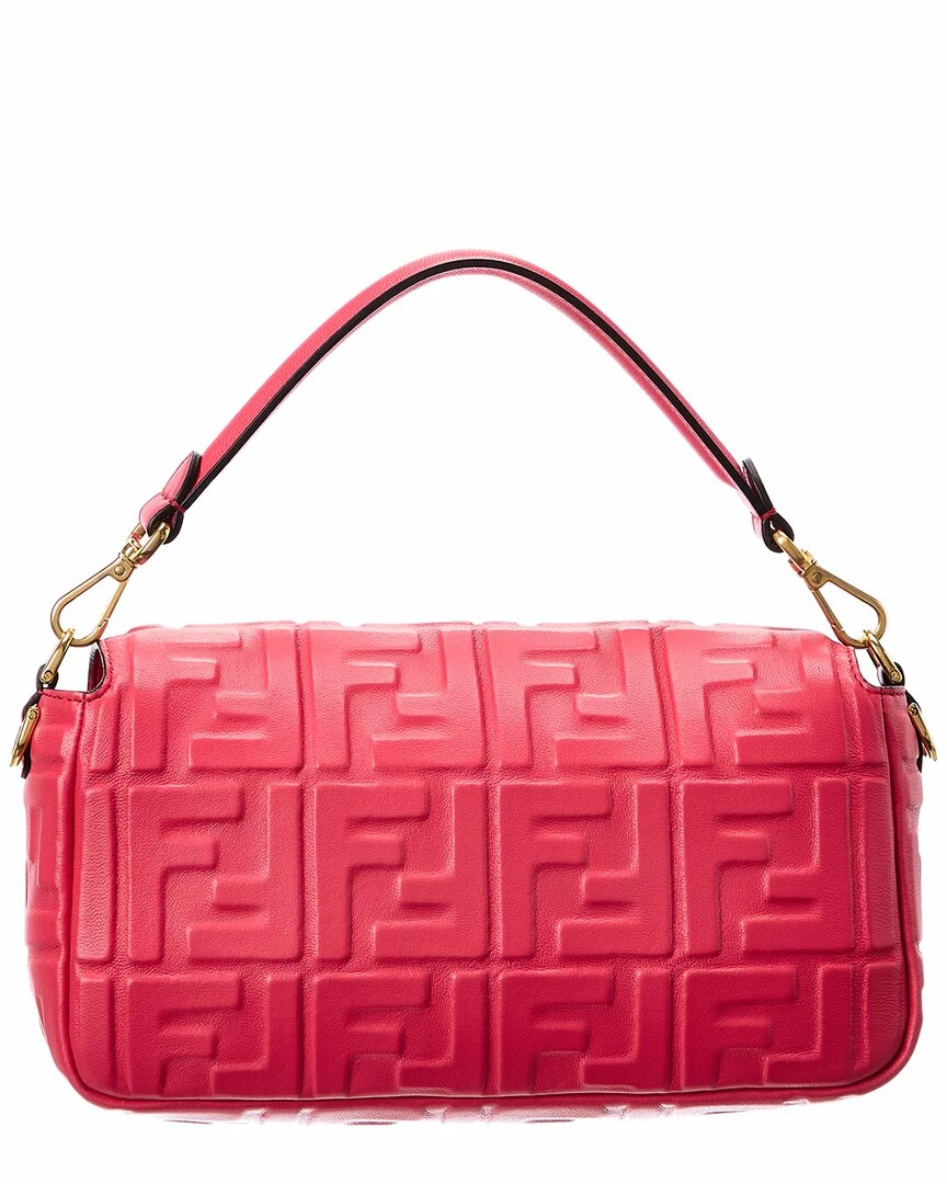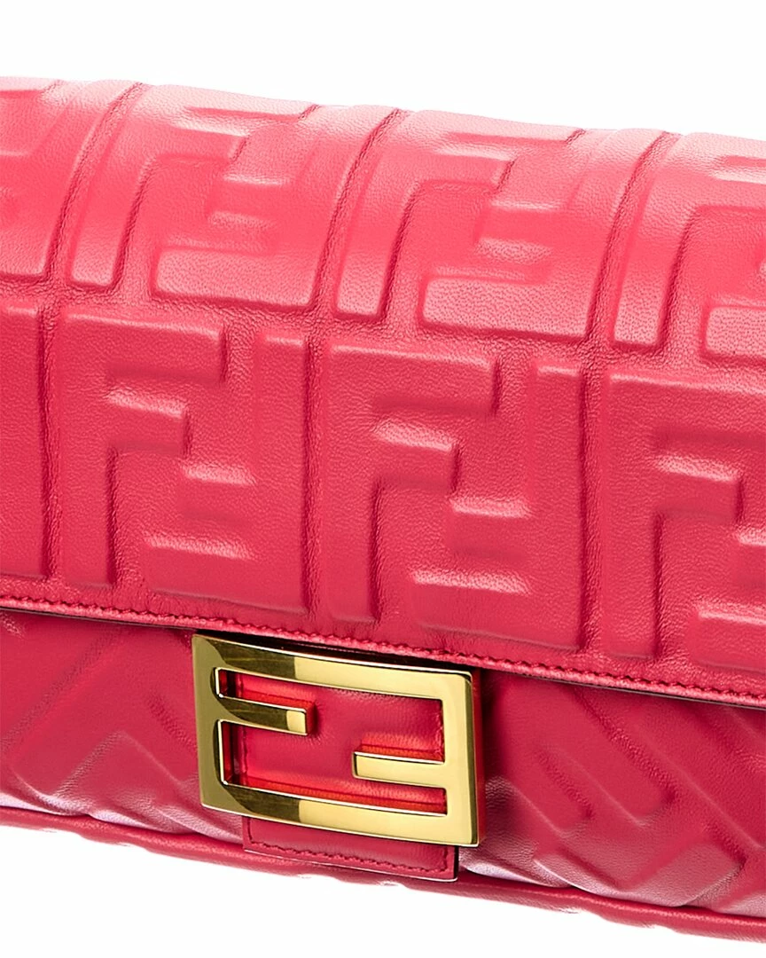 - Baguette Leather Shoulder Bag in pink FF leather with gold-tone hardware and logo accent