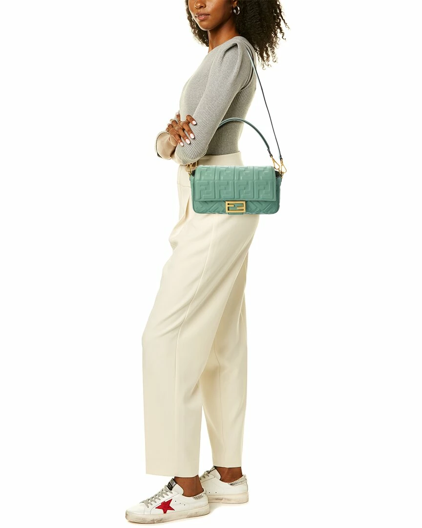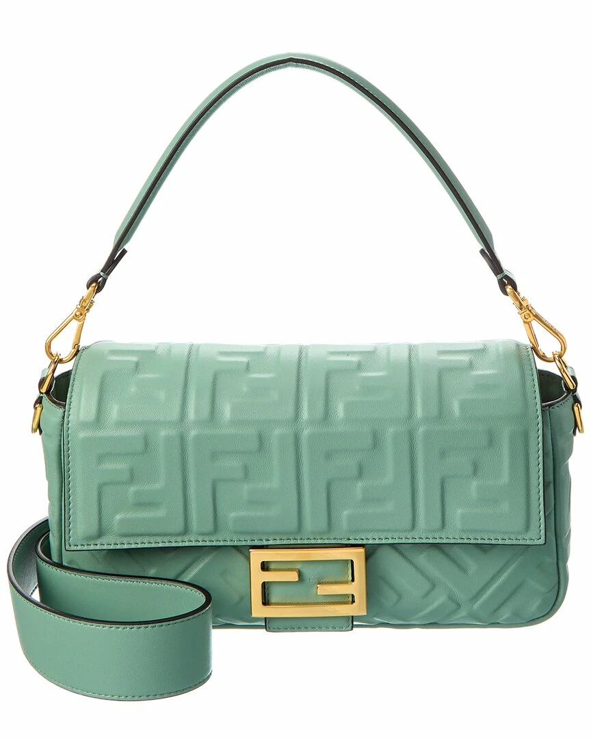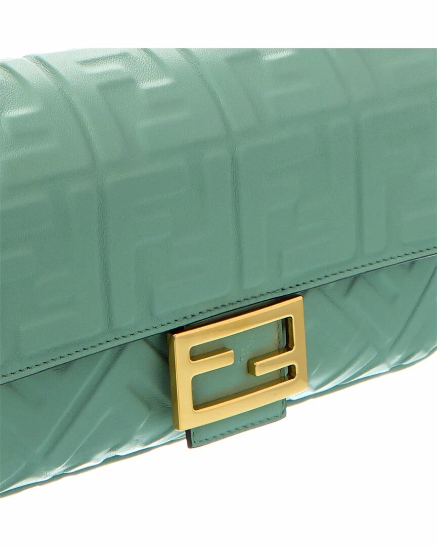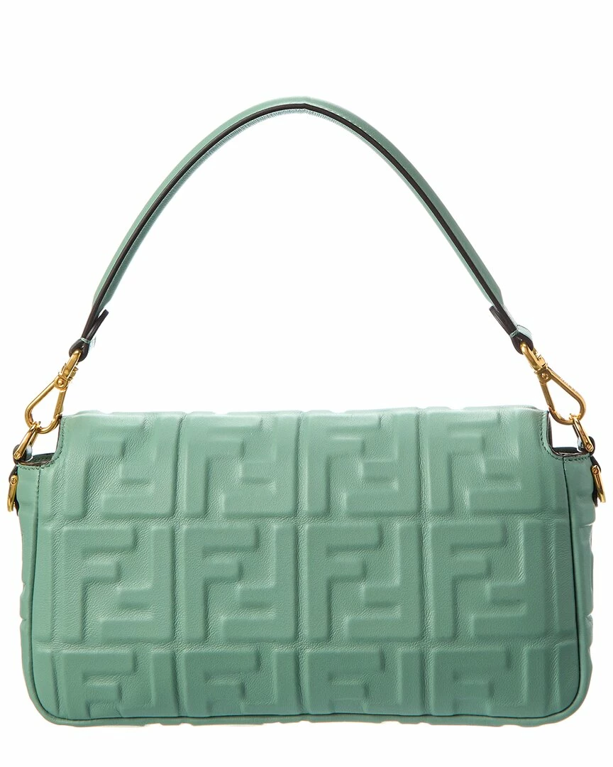 - Baguette Leather Shoulder Bag in mint green FF leather with gold-tone hardware and logo accent