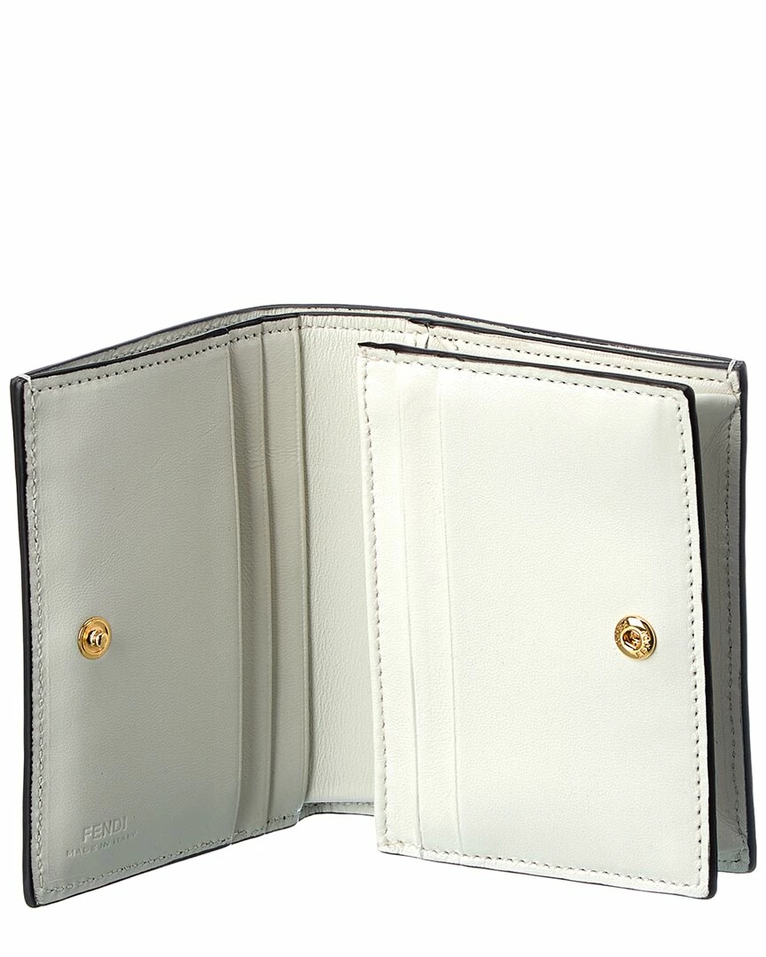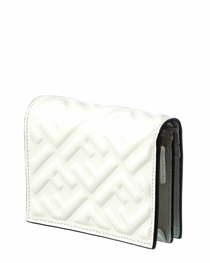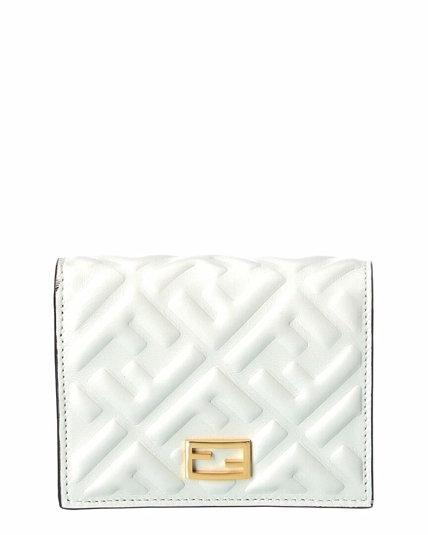 - Baguette Mini Leather Coin Purse in white FF leather with gold-tone hardware and logo accent