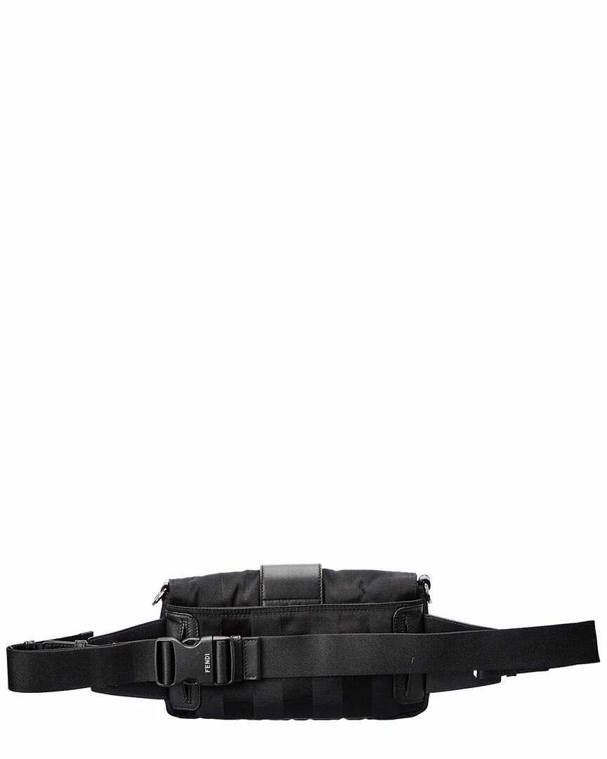 - Baguette Belt Bag in Black Pequin Canvas with canvas lining and silver-tone hardware