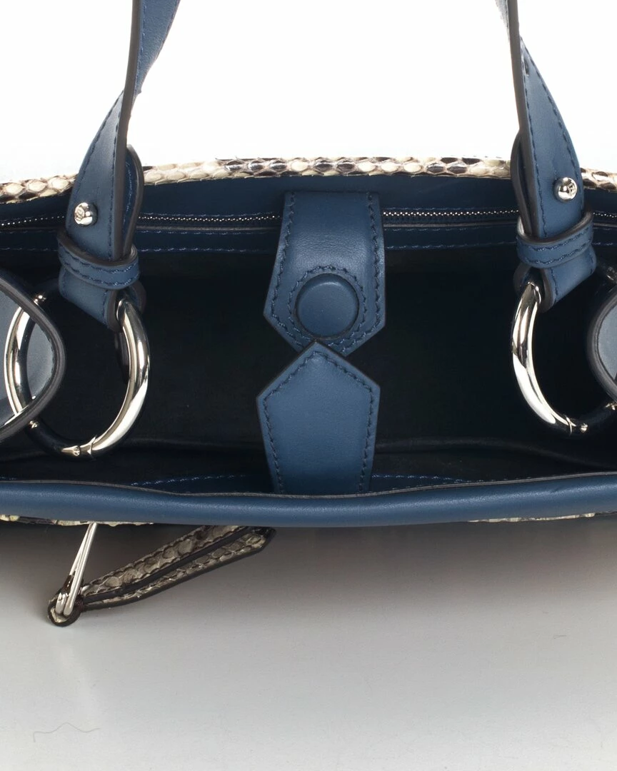 - This is an authentic, pre-owned piece. This item is in very good condition and shows light signs of wear. This item shows slight lifting on snakeskin accent, minor smudges and scratches on hardware,.