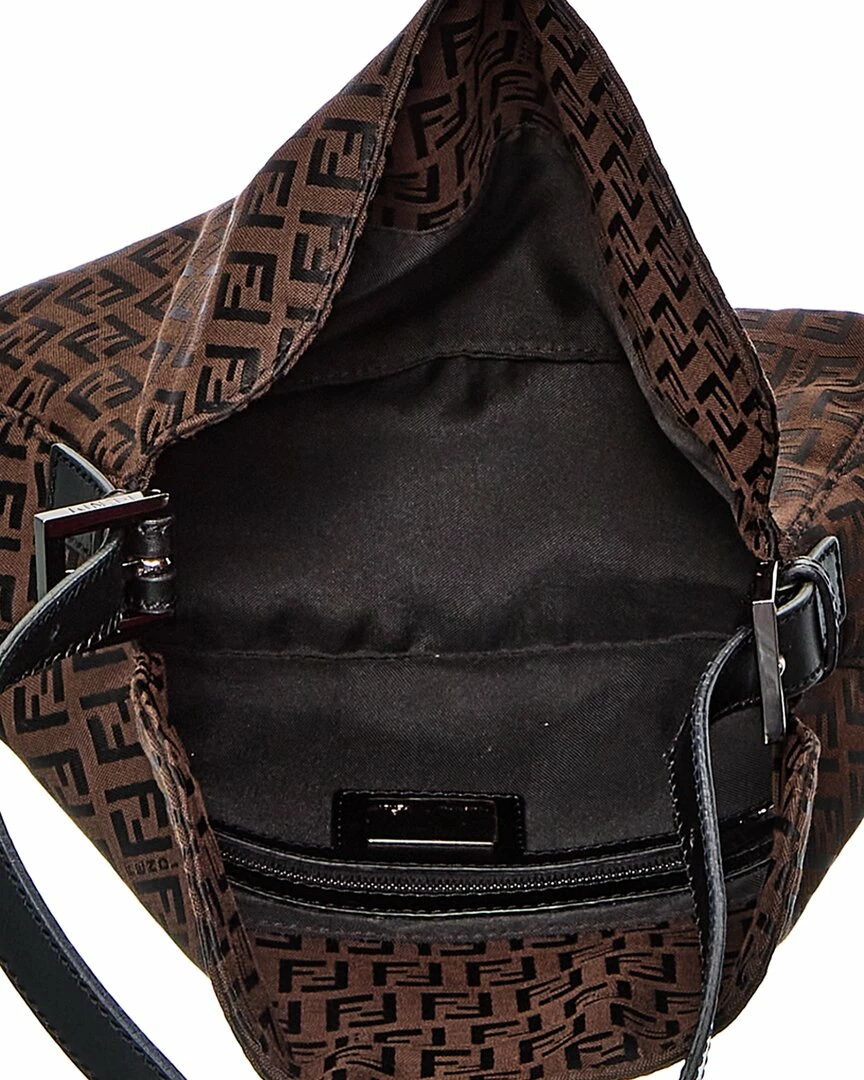 - Baguette Shoulder Bag in Brown Zucchino-Print Canvas with textile lining and gold-tone hardware
