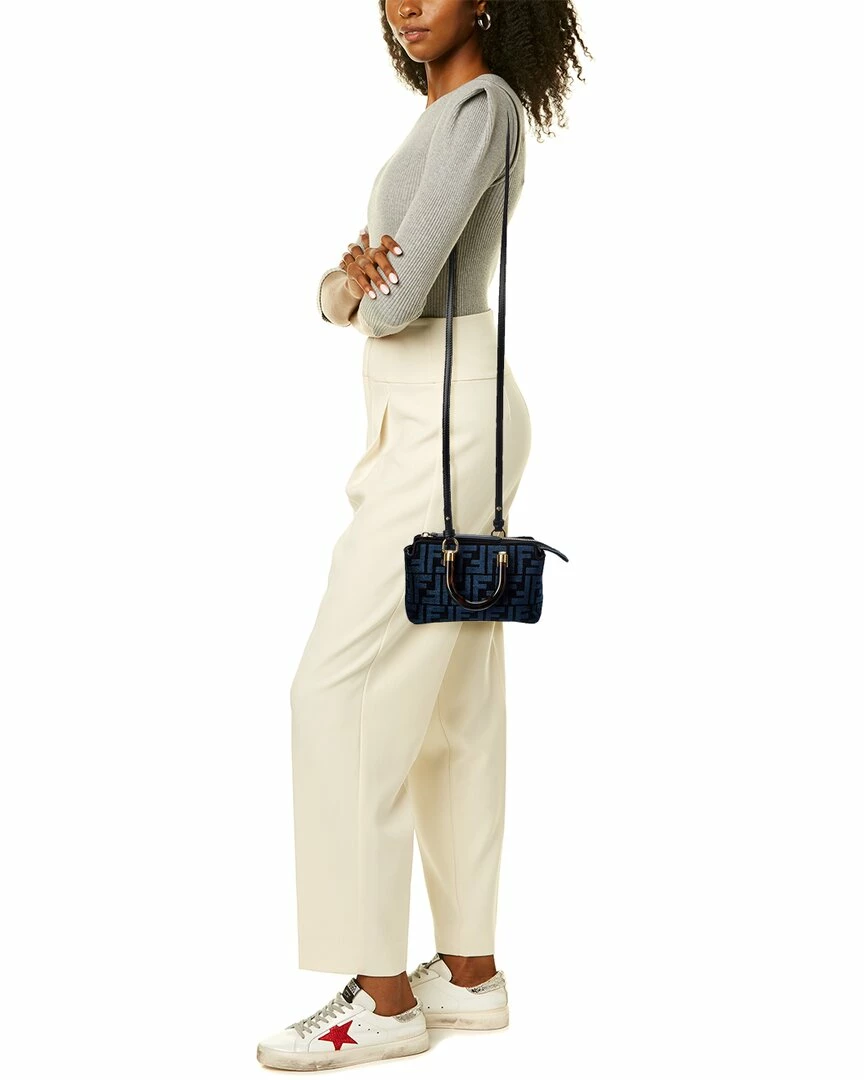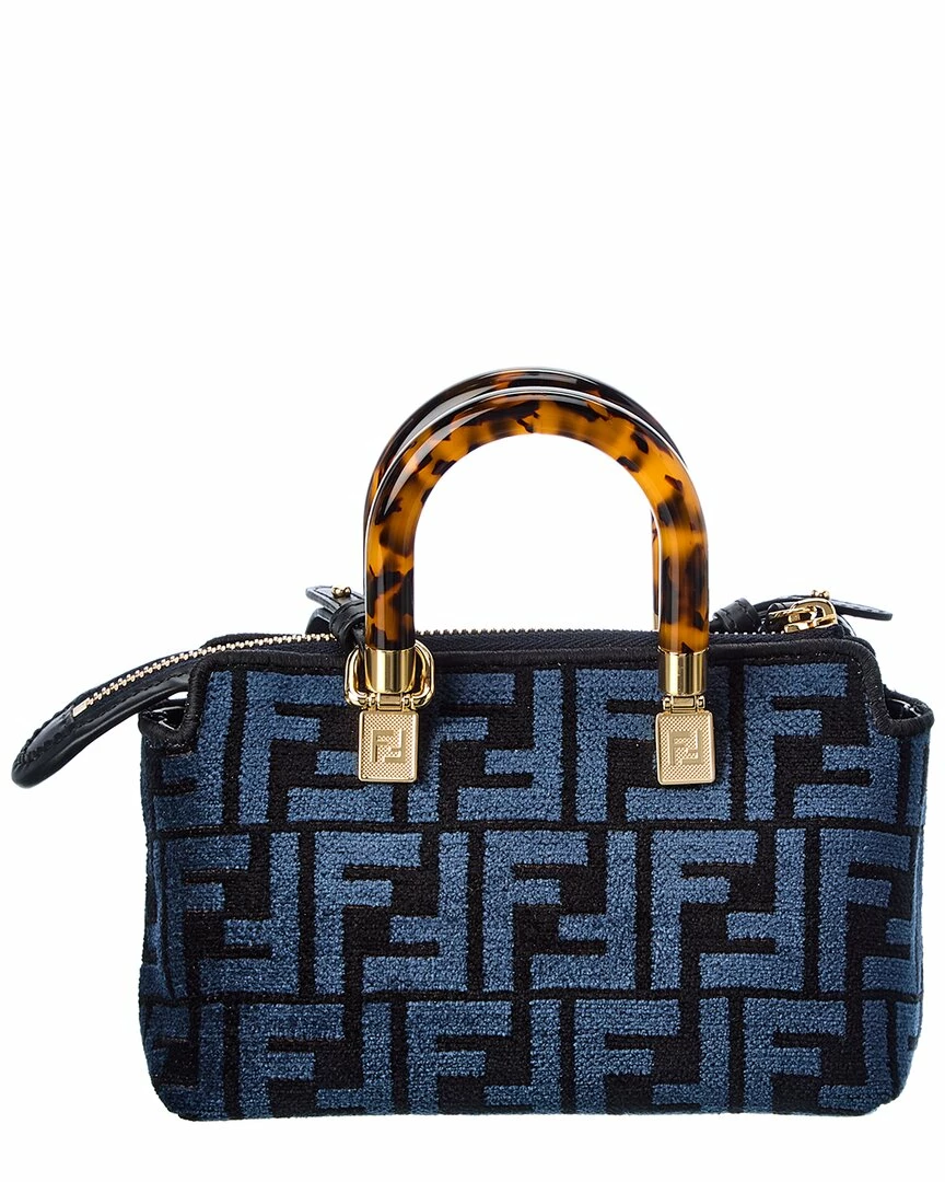 - By The Way Mini FF Tapestry Shoulder Bag in navy FF tapestry chenille with gold-tone hardware and plexiglas top handles