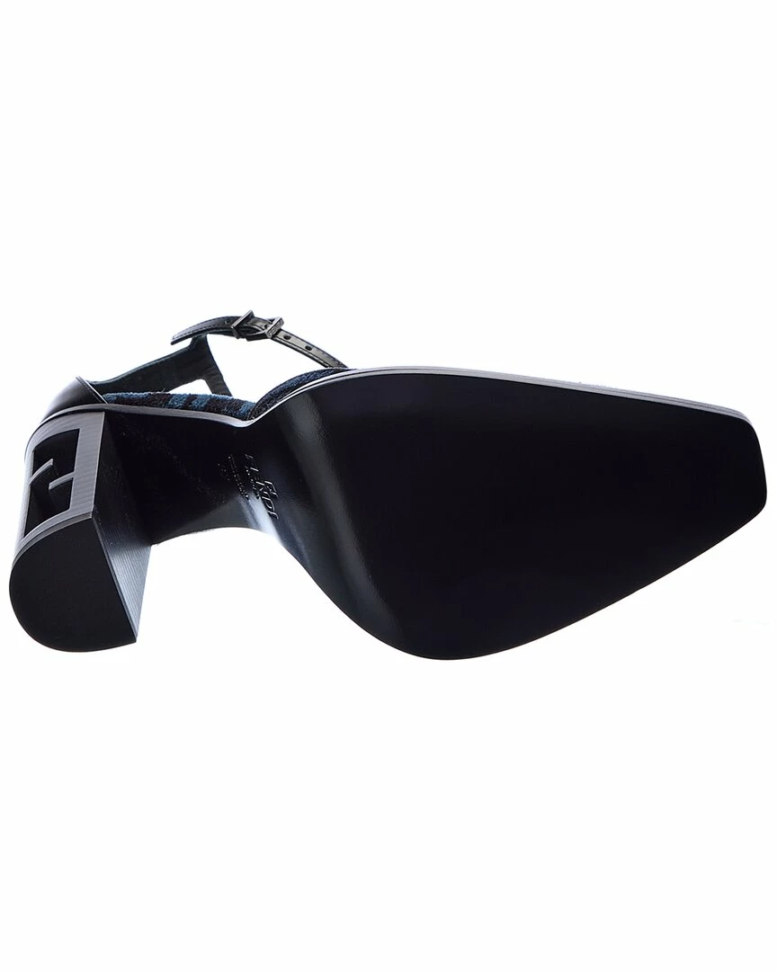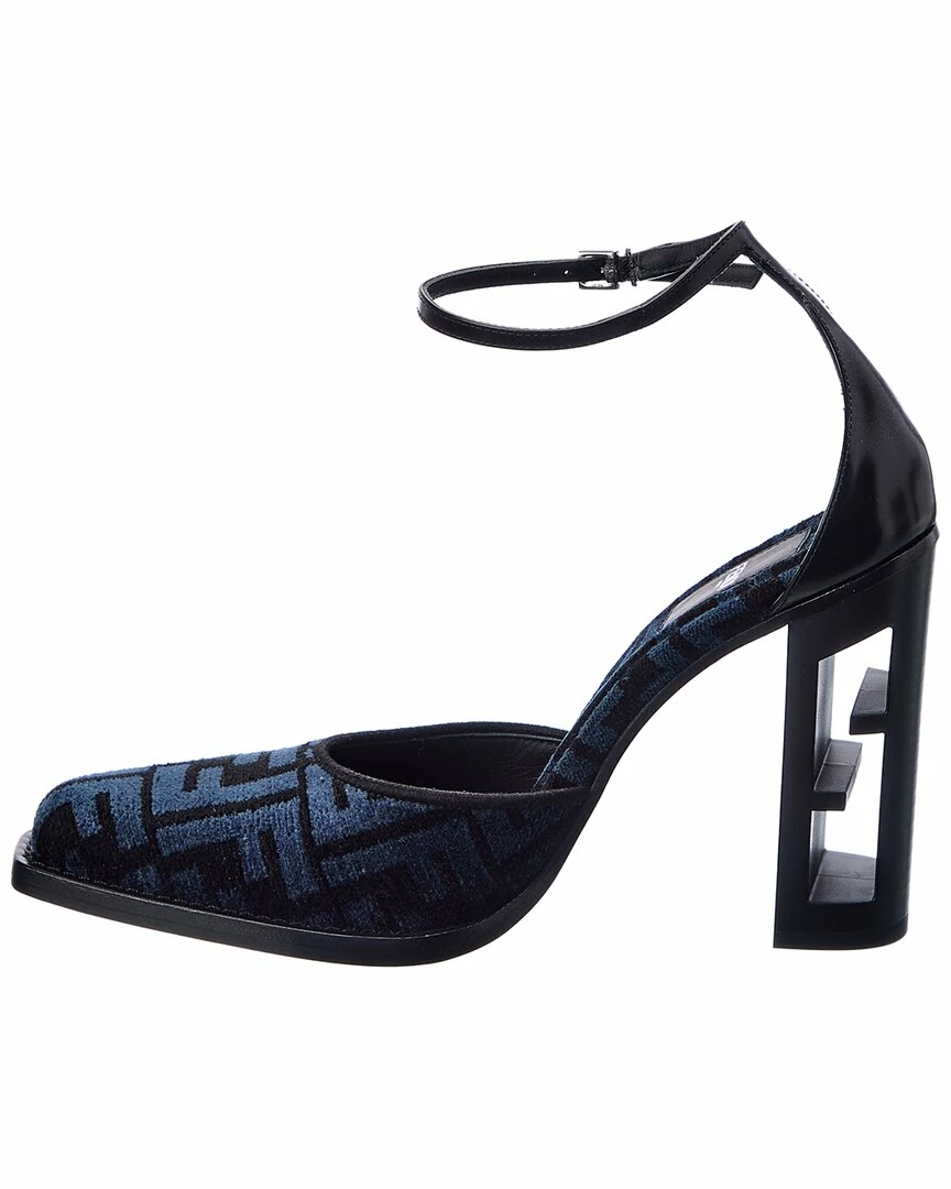 - Cut FF Chenille Pump in blue FF jacquard chenille and silver-tone hardware with cutout logo heel