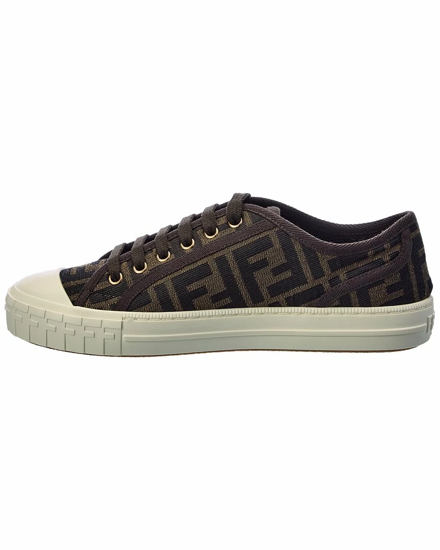- Domino FF Canvas Sneaker in brown FF jacquard canvas and gold-tone hardware with rubber toe