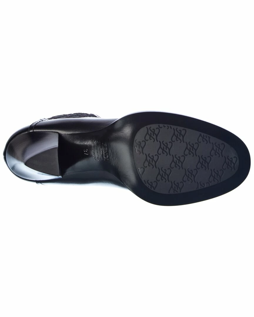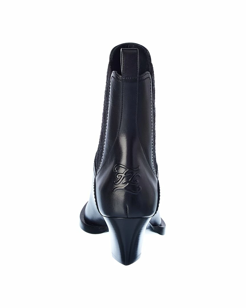- FF Karligraphy Leather Boot in black leather with jacquard knit