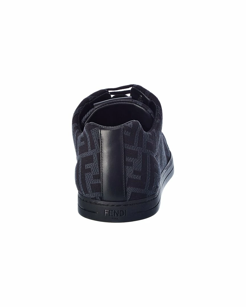 - FF Knit Sneaker in navy FF knit textile and silver-tone hardware with embossed logo detail