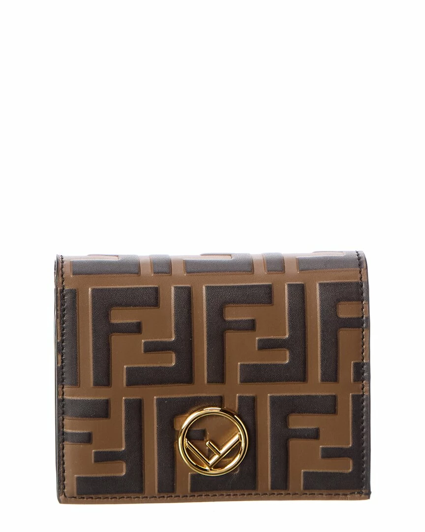 - FF Leather Coin Purse in brown FF leather with gold-tone hardware and logo accent