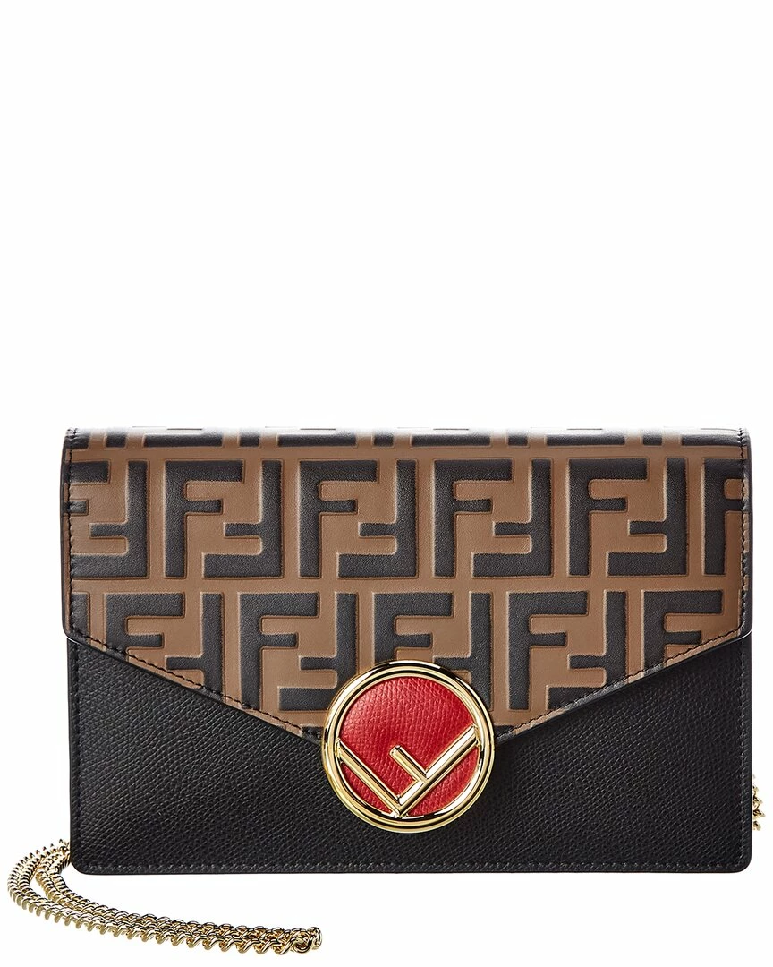 - FF Leather Shoulder Bag in black and FF embossed leather and gold-tone hardware with logo accent