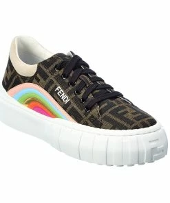 - Force FF Sneaker in brown FF motif fabric with rainbow leather accent