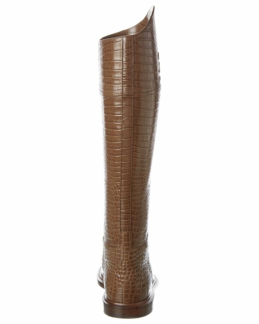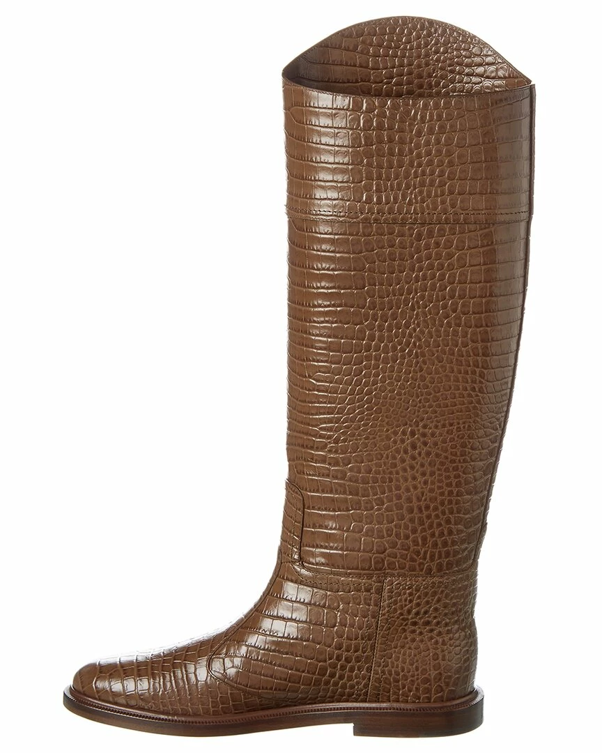 - Karligraphy Croc-Embossed Leather Boot in brown croc-embossed with embossed logo accent