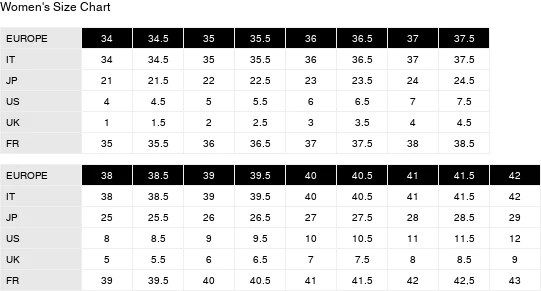 - Please note: Size selections are European. For US conversions, please reference size chart.