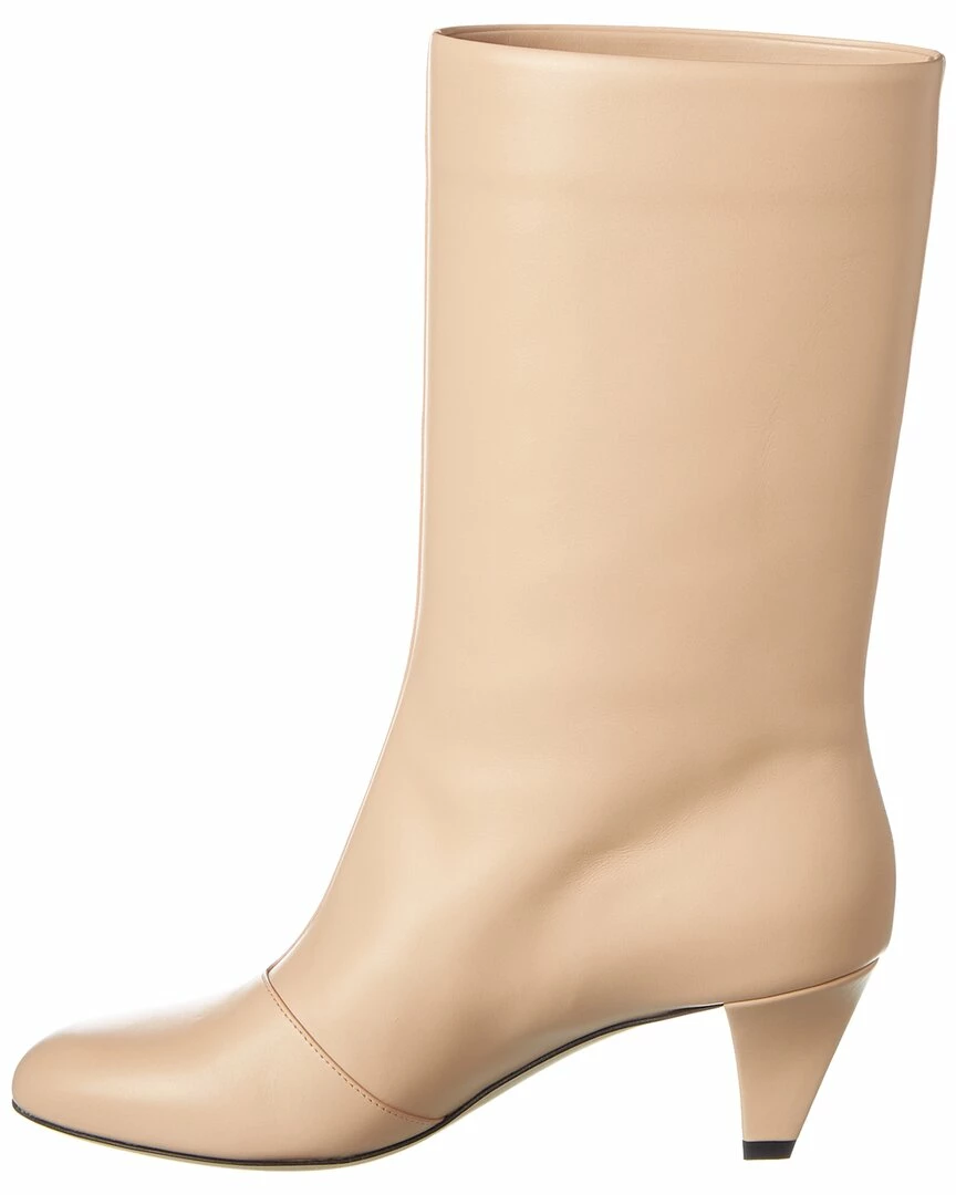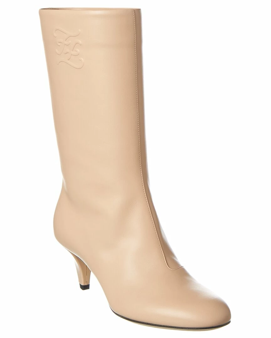 - Karligraphy Leather Boot in beige leather with embossed logo accent