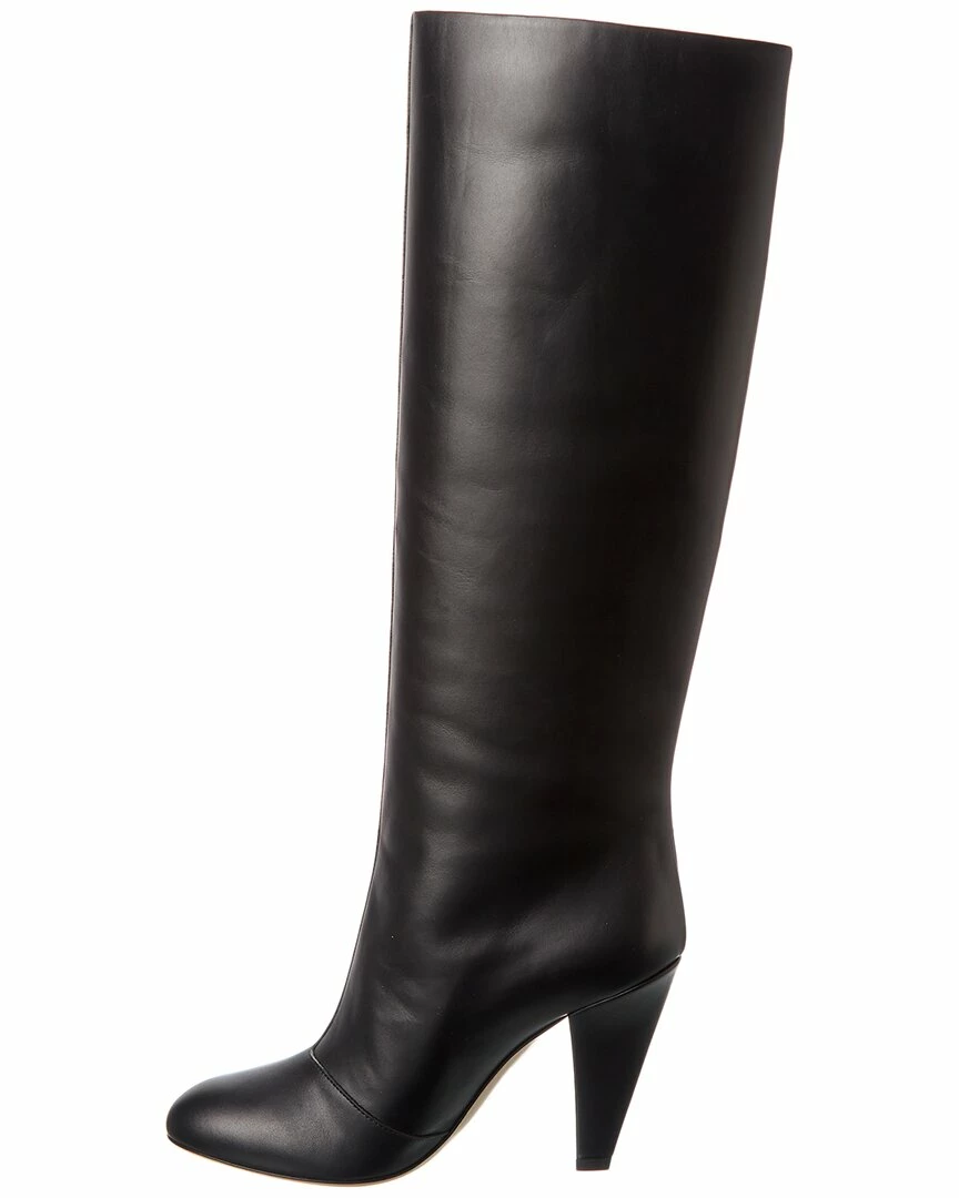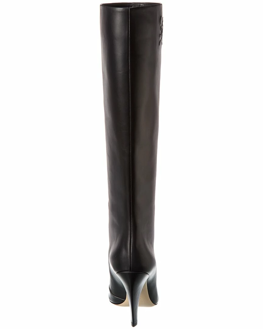 - Karligraphy Leather Knee-High Boot in black leather with logo accent