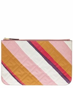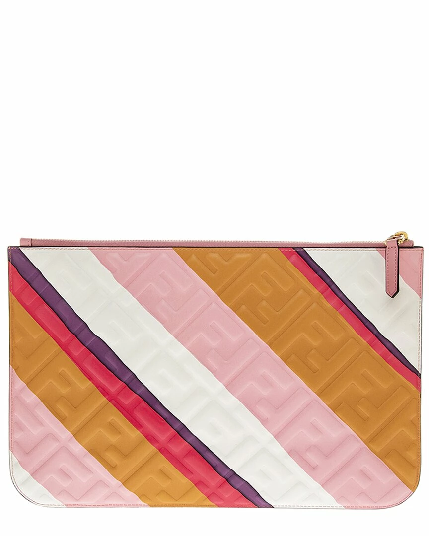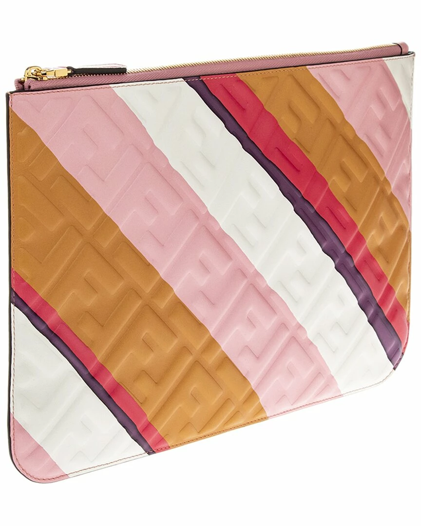- Large Flat FF Embossed Leather Pouch in pink and multicolor leather