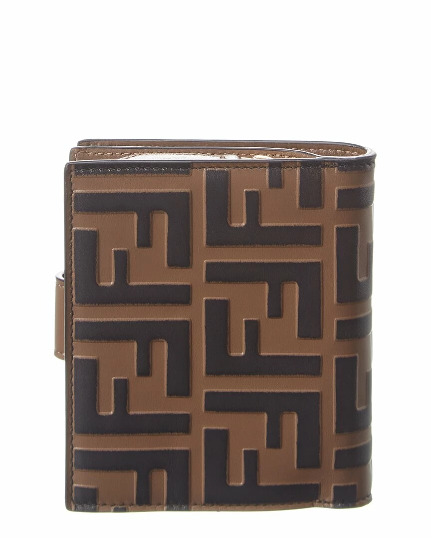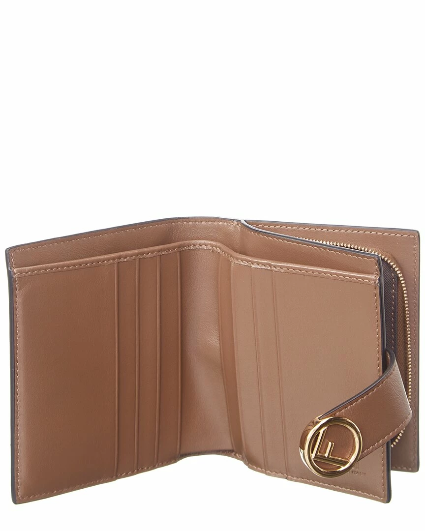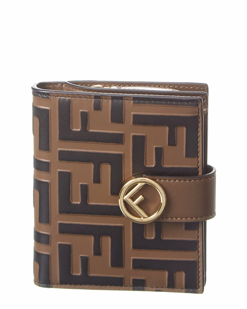 - Leather French Wallet in brown FF leather with gold-tone hardware and logo accent
