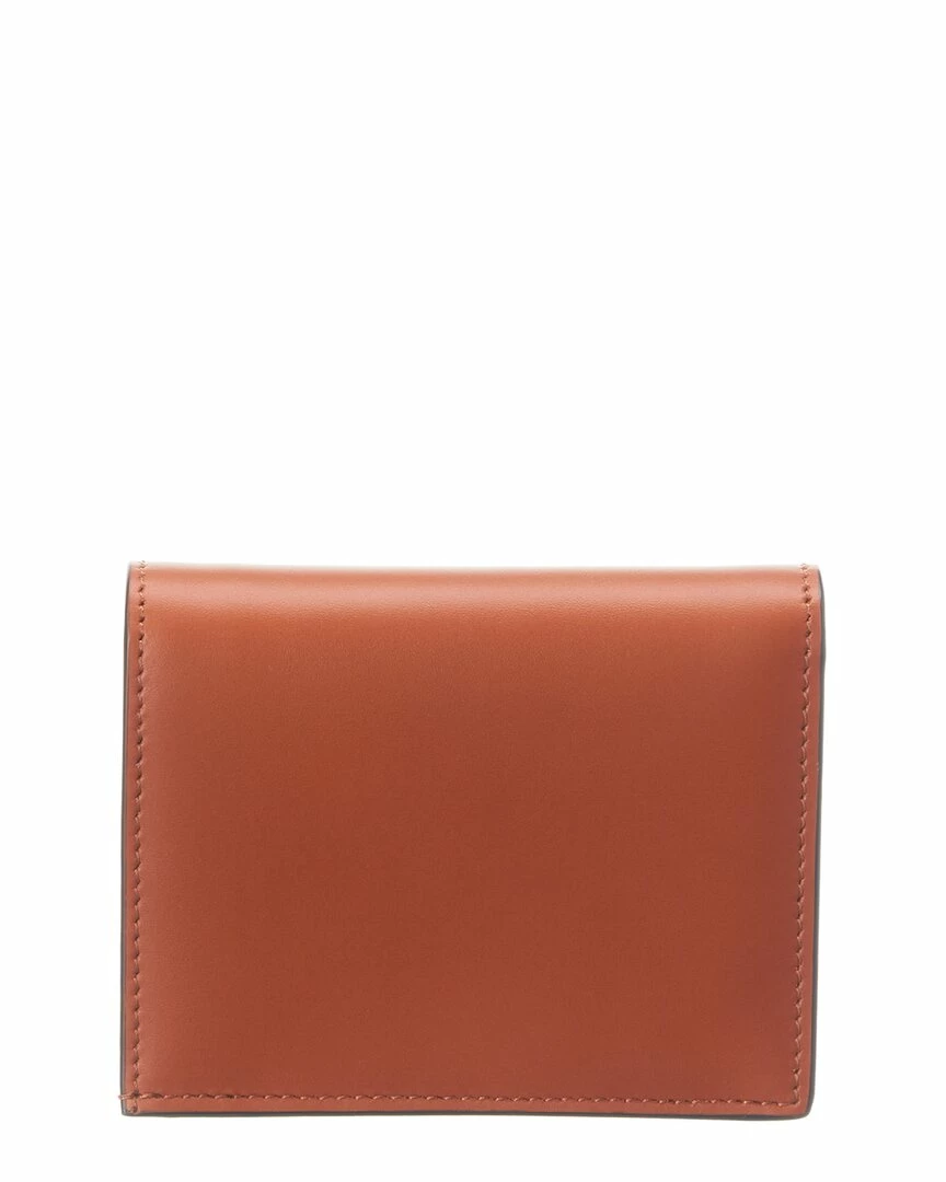 - Logo Leather Coin Purse in brown leather with gold-tone hardware and embossed logo accent