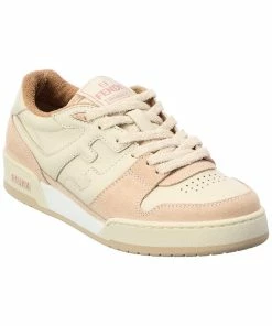 - Match Suede & Leather Sneaker in pink leather and suede with logo accents and terry cloth trim
