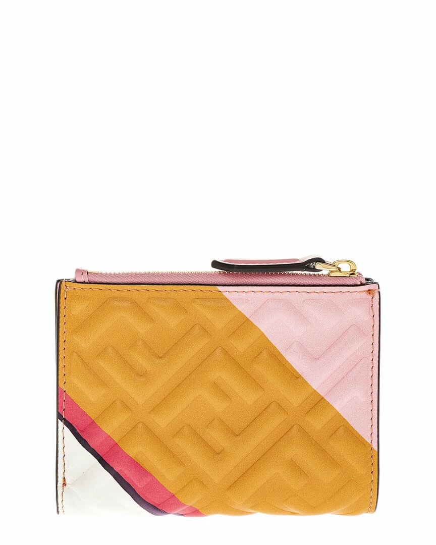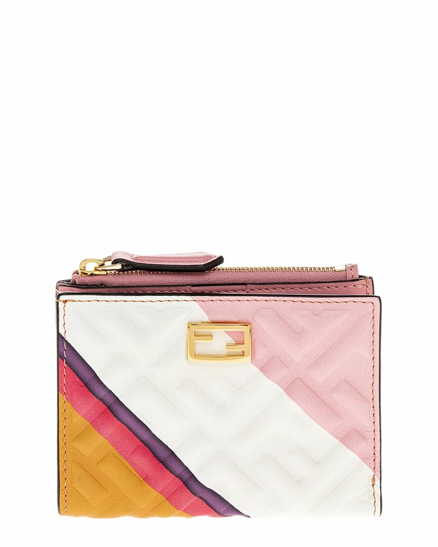 - Medium FF Embossed Leather Baguette Wallet in pink and multicolor leather