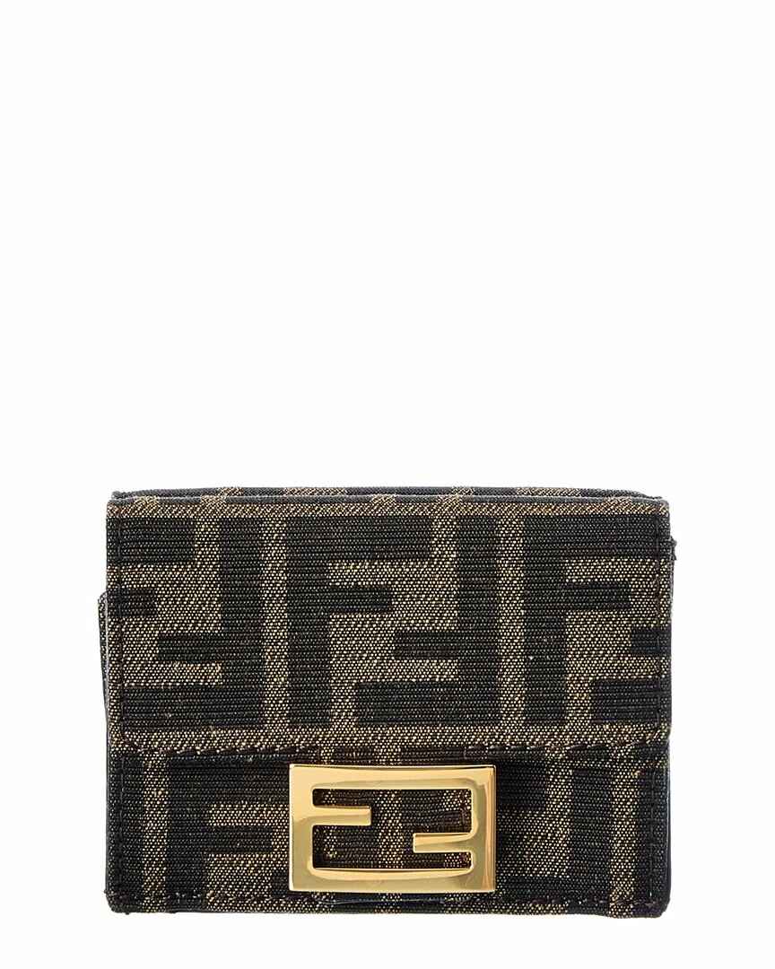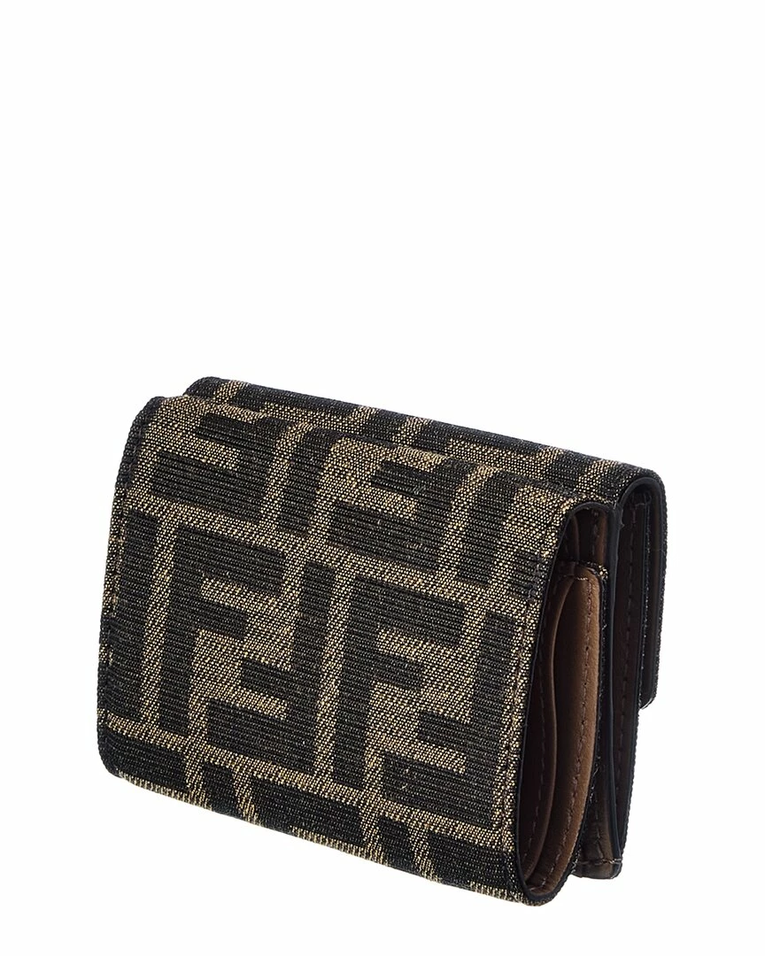 - Micro Trifold FF Wallet in brown FF fabric with gold-tone hardware