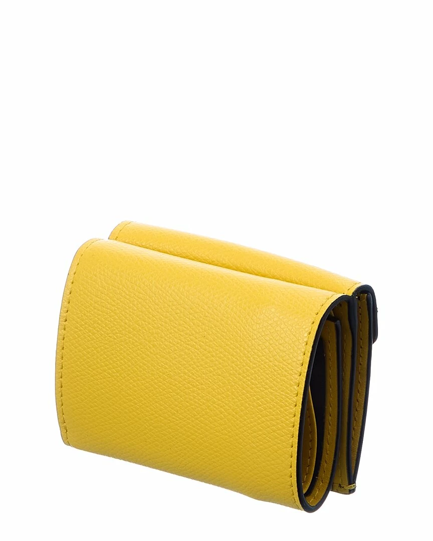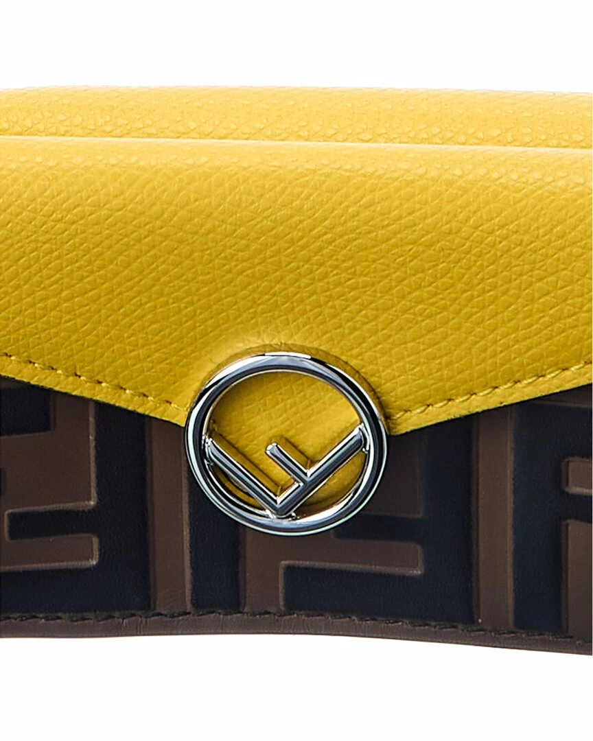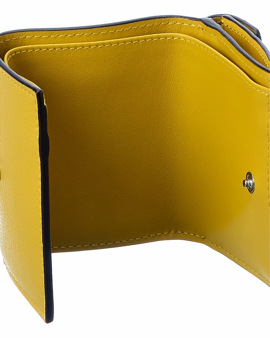 - Micro Trifold Leather French Wallet in yellow and FF leather with silver-tone hardware