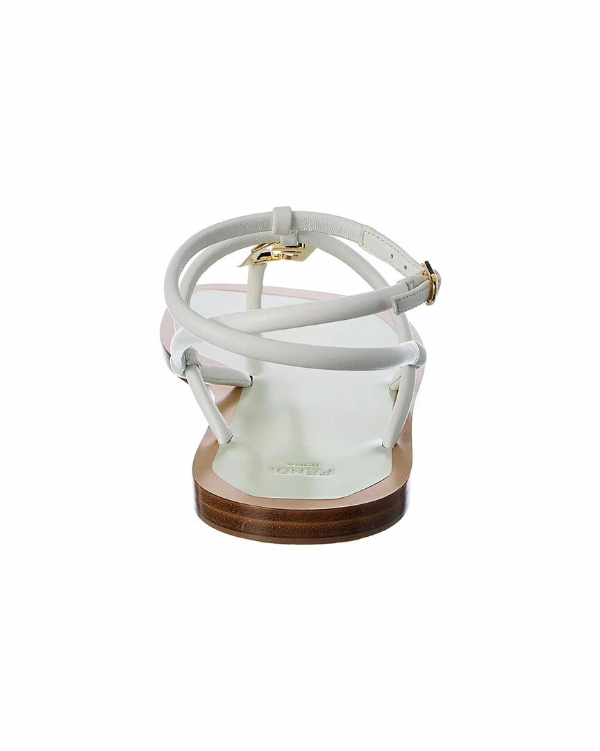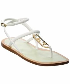 - O’Lock Leather Sandal in white leather and gold-tone hardware with logo accent