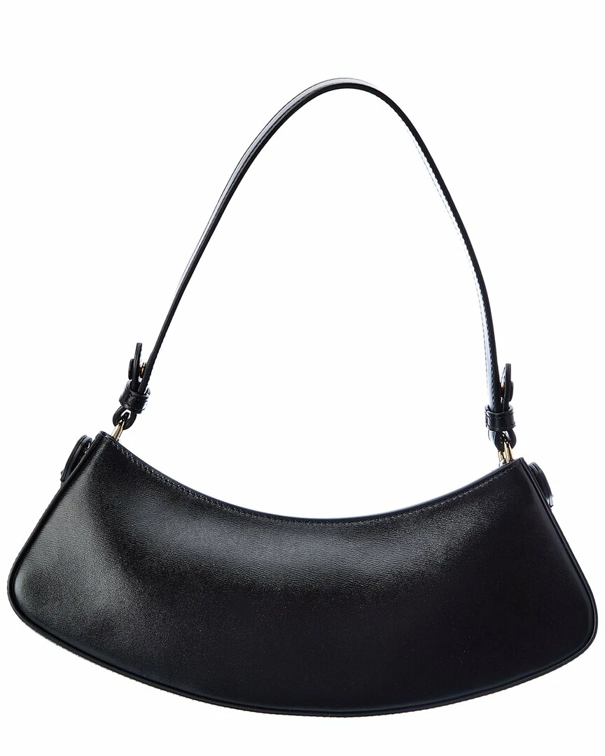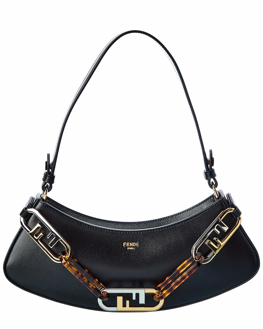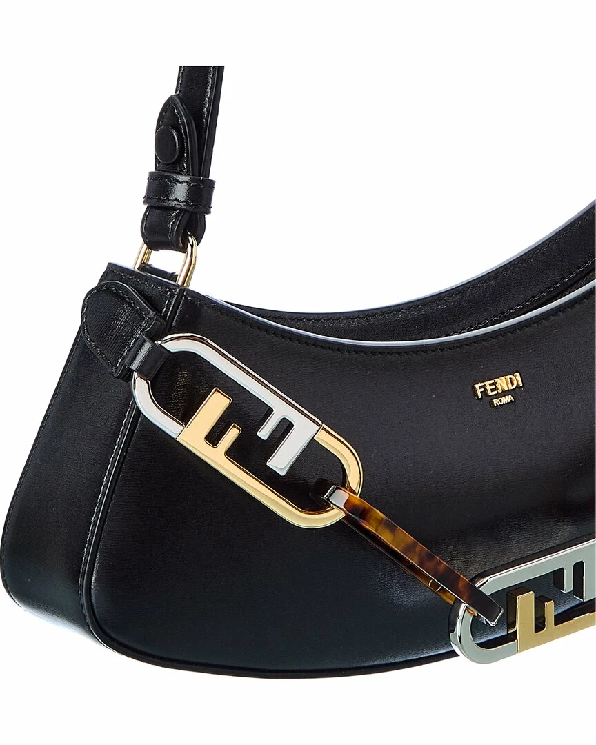 - O’Lock Swing Leather Shoulder Bag in black leather and gold-tone and silver-tone hardware with small FENDI lettering
