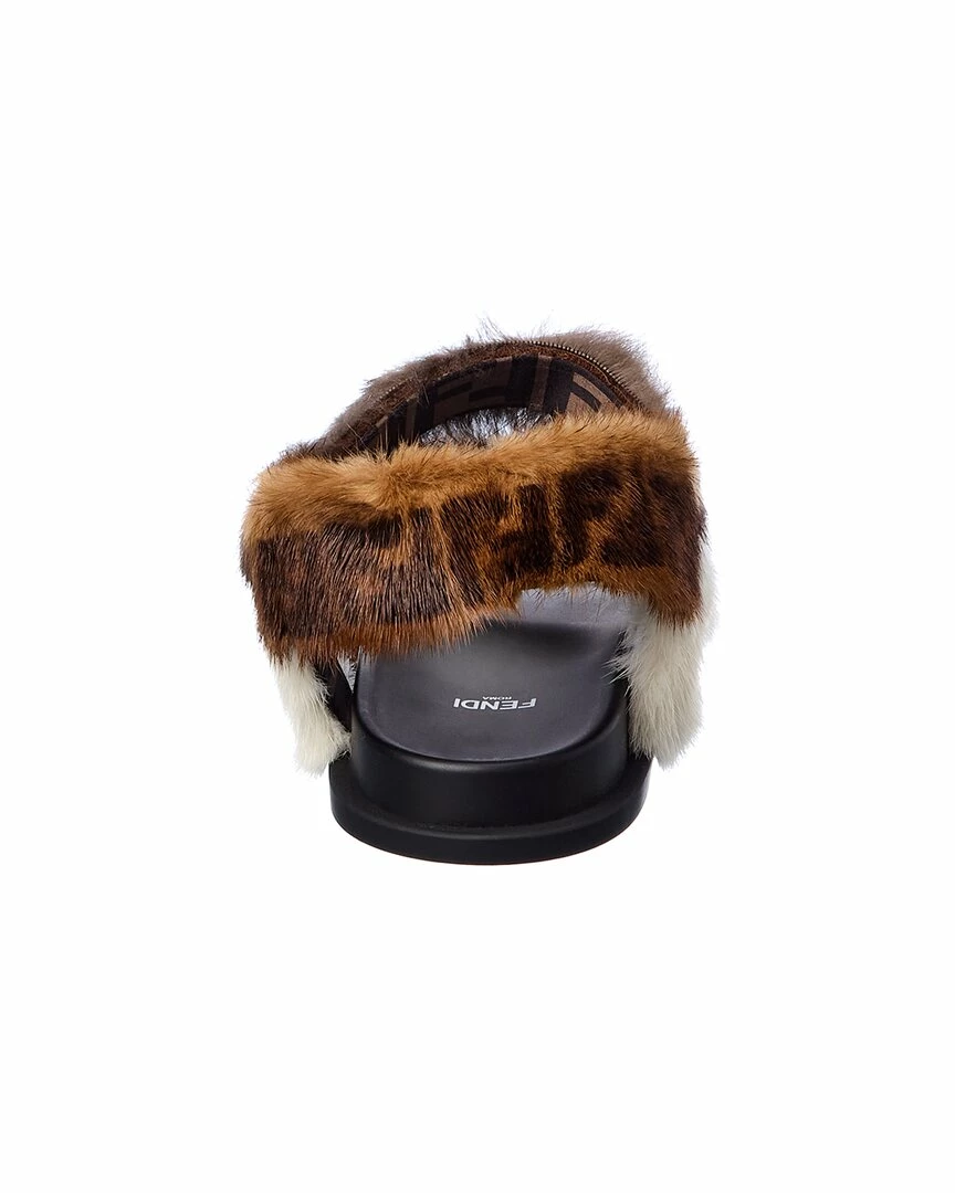 - Strappy Sandal in brown multicolor fur with FF printed strap lining