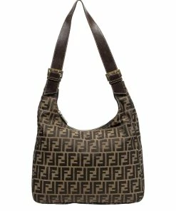 FENDI Brown Zucchino-Print Canvas Baguette Shoulder Bag (Authentic Pre-Owned) Women Shoulder Bags