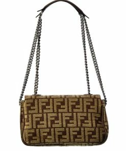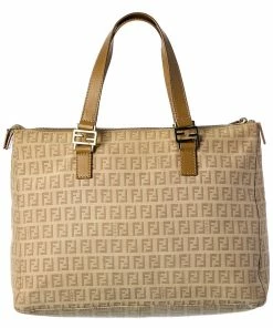 FENDI Beige Zucchino-Print Canvas East/West Bag (Authentic Pre-Owned) Women Shoulder Bags