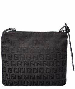 FENDI Black Zucchino-Print Canvas Flat Messenger Bag (Authentic Pre-Owned) Women Shoulder Bags