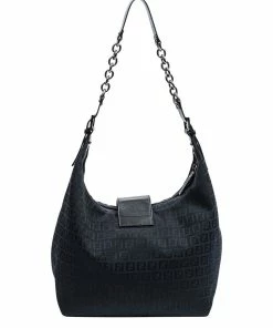 FENDI Black Zucchino-Print Canvas Chain Hobo Bag (Authentic Pre-Owned) Women Shoulder Bags