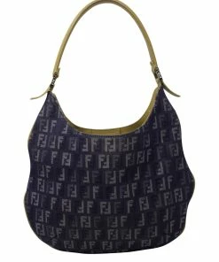 FENDI Blue Zucchino-Print Canvas Shoulder Hobo Bag (Authentic Pre-Owned) Women Shoulder Bags
