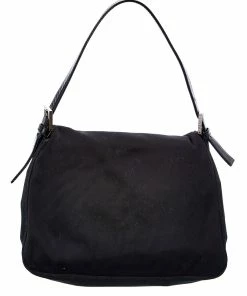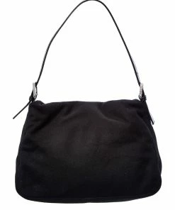 FENDI Black Zucca-Print Canvas Mamma Baguette (Authentic Pre-Owned) Women Shoulder Bags
