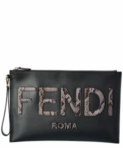 FENDI Large Flat FF Embossed Leather Pouch Women Wallets & Card Cases